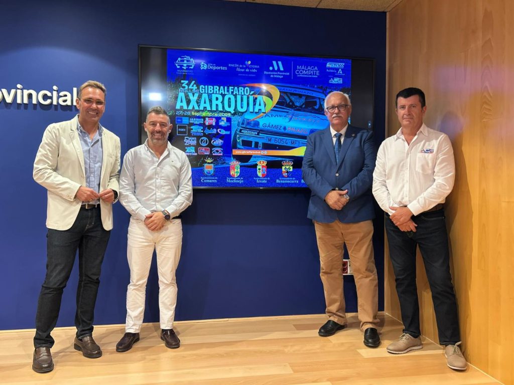 Así lo ha dado a conocer hoy el concejal de Deportes del Ayuntamiento de Rincón de la Victoria, Antonio José Martín (PP), junto al vicepresidente y diputado de Deportes, Juan Rosas, junto al alcalde Comares, José Miguel Ruiz; el alcalde de Moclinejo, Antonio Muñoz; el alcalde de Iznate, Gregorio Antonio Campos; el alcalde de Benamargosa, Salvador Arcas; Daniel Hernández, concejal de Totalán; Desiré Téllez, concejala de Benamocarra; el presidente de la Federación Andaluza de Automovilismo, Manuel Alonso, y el organizador del rallye, Juan Gómez.